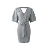 Women Casual V-neck Short Sleeve Wrapped Dress Lace Up Mid-skirt Summer Loose Dress