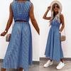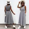 Elegantní módní dámské šaty s kostkovaným potiskem Letní ležérní kapsa vzadu A-line Společenské šaty Dámská móda Volné plážové šaty