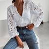 Dámská móda Háčkované krajkové košile Dlouhý pufovaný rukáv Ležérní Květinová výšivka Zapínání na knoflíky Halenka Topy Kancelářská dáma