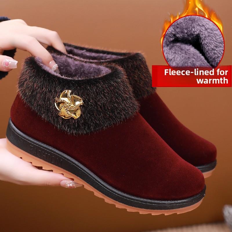 Thiened Fluffy Anti-slip Winter Cotton Soes Women Traditional Beijing Cloth oes Comfortable Low Heel Flat