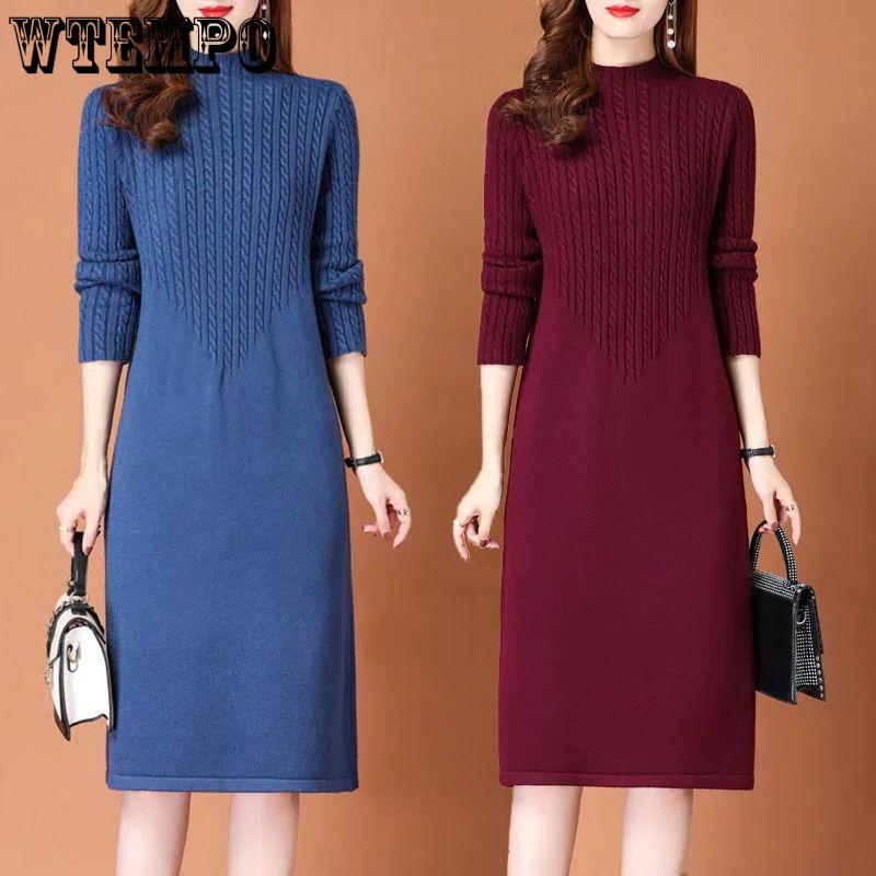 Trendy jednobarevné pletené šaty pro ženy na podzim a zimu Slim svetr s polovičním rolákem Ležérní pletený svetr s dlouhým rukávem