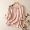 Cotton and Linen Blouse Women's High-end Ramie Linen Plus Size Summer 2025 Chinese Style Short-sleeved Shirt