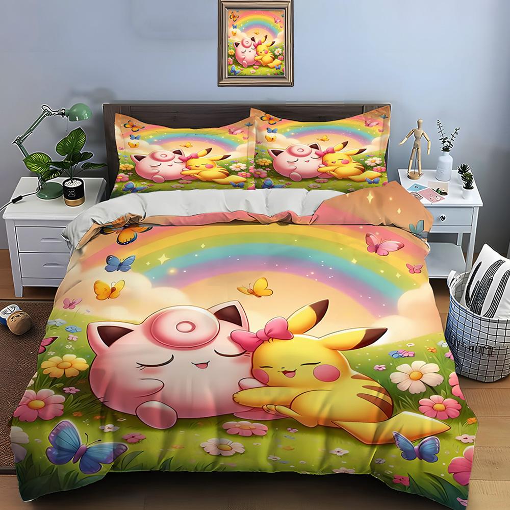 Pokemon Jigglypuff Potisk Povlečení Sada Přikrývka 1 Povlak na přikrývku 2 Povlaky na polštáře Sada ložního prádla pro dospělé a děti Luxusní dárek k narozeninám