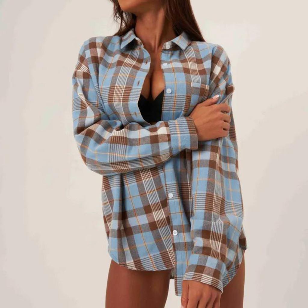 Dámská ležérní kostkovaná košile s dlouhým rukávem Volný top