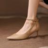 2025 spring new popular single shoes light mouth women's shoes nude pointed thin heel elegant one-word buckle high heels