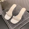 French high-heeled slippers women's summer outer wear 2025 new pearl small fragrant style transparent word with thick heel crystal sandals