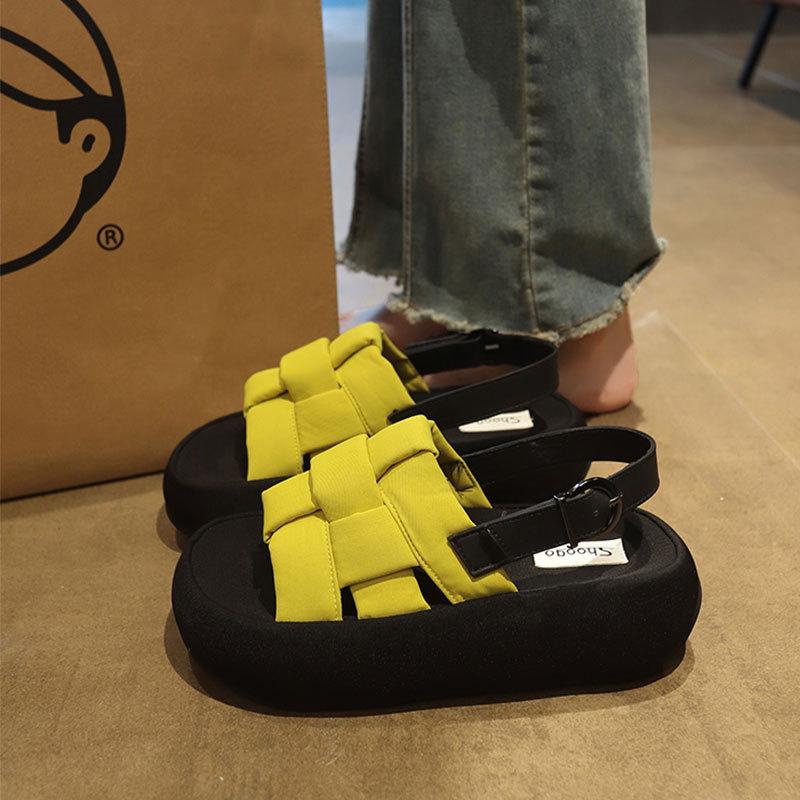 Internet celebrity platform woven sandals women wear 2025 new summer versatile skirt beach roman shoes ins