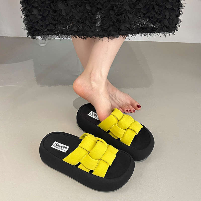 2025 new platform one-word slippers women's summer wear canvas sandals fashion with skirts beach sandals women's shoes