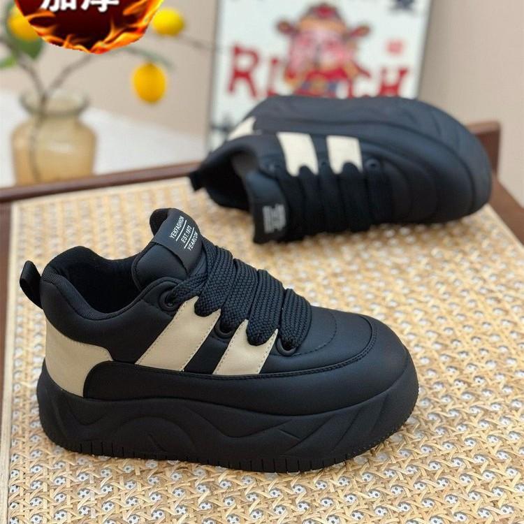 Internet celebrity velvet women's shoes platform bread shoes 2025 autumn and winter sports shoes new casual shoes versatile soft baseplate shoes