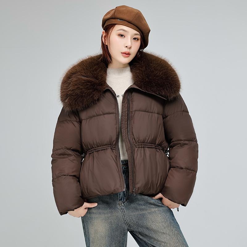 Women’s Short Big Fur Lapel Drawstring Warm Winter Jacket