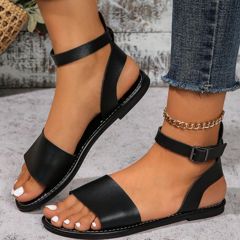 Plus Size 36-43 New High Quality Leather Sandals Women Shoes Ladies Solid Color Flat Summer Beach Shoes
