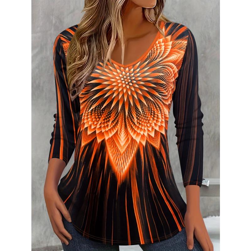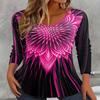 Long Sleeve Casual V Neck Top - Floral Print T-shirt for Spring & Fall - Women's Clothing