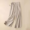 Dámské bavlněné lněné palazzo kalhoty se širokými nohavicemi Elastické capri kalhoty s vysokým pasem