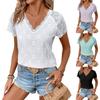 Ladies Summer V Neck Lace Short Sleeve Solid Color Pullover T Shirt Top