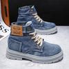 Retro plátěné boty pro muže Trendy pracovní boty Vysoké pánské kotníkové boty Outdoorový streetový styl Platformové boty