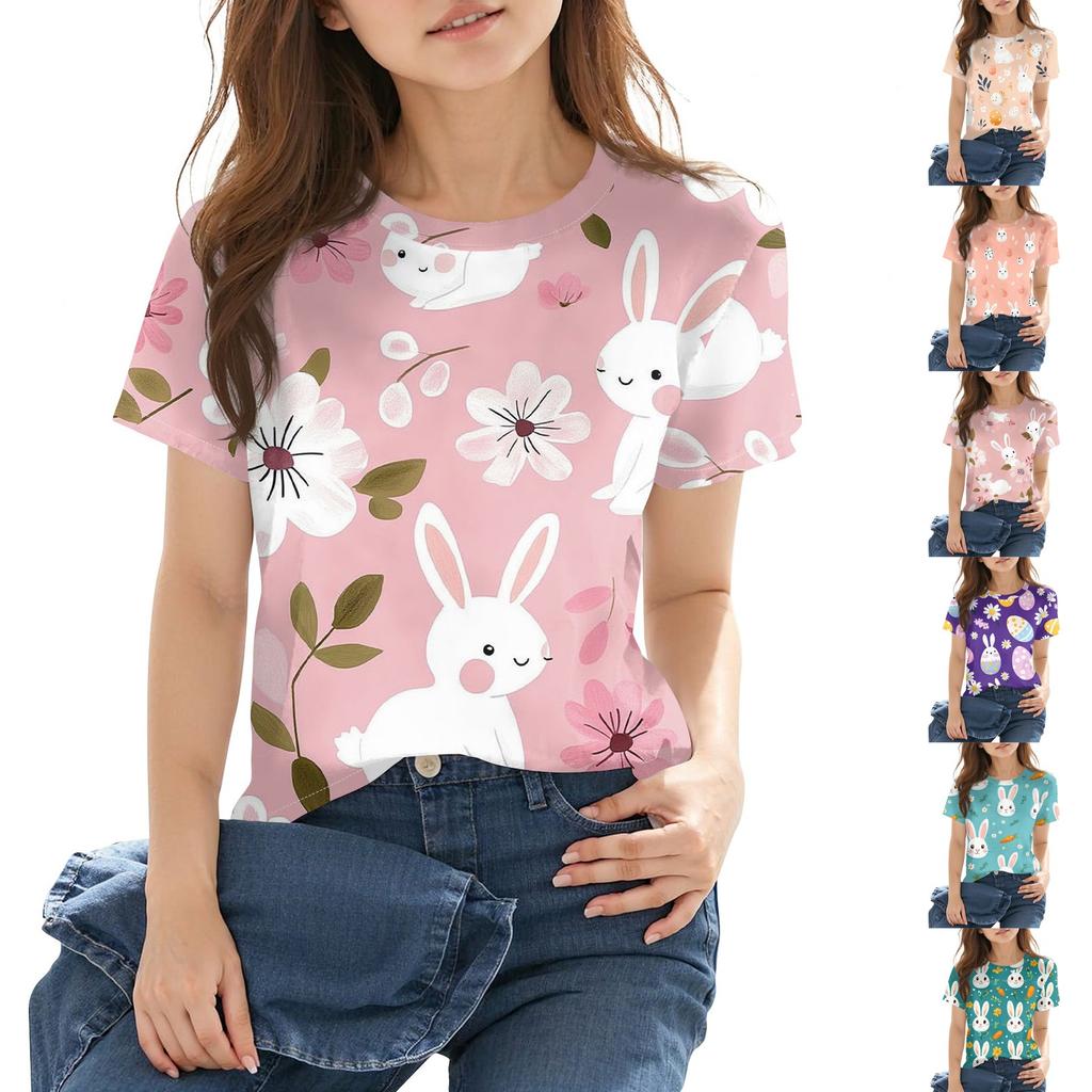 Children's Fashion Casual Short Sleeve Easter Printed Round Neck Fashion T-shirt Top