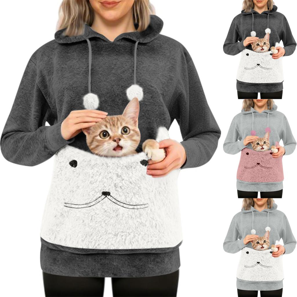 Women's Fashion Casual Top Solid Color Long Sleeve Pet Pocket Hoodie Sweatshirt