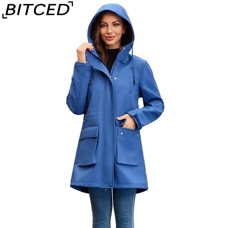 BITCED Autumn/Winter Jacket Women's Waterproof Hooded Raincoat Trench Coat