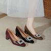 Square head high heels women's 2025 spring new rhinestone square buckle low heel red wedding shoes French light mouth single shoes thick heel