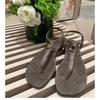 Sheepskin version~ Retro metal buckle toe flat sandals versatile simple word with Roman beach cool slippers women