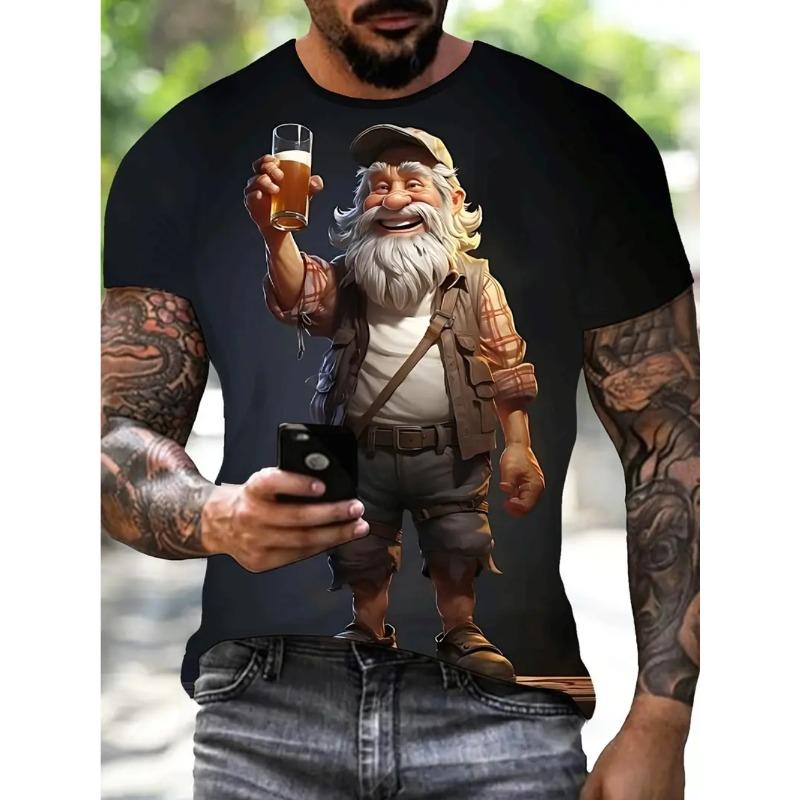 Pánské letní pohodlné prodyšné nadměrné 3D módní kreslené potištěné tričko - Měkká středně elastická polyesterová tkanina Letní pánské oblečení volného střihu
