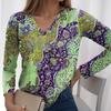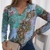 Spring and Autumn V-neck 3D Paisley Printed Top Fashionable Casual Long Sleeved Women's T-shirts