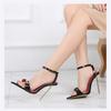 12cm Kovové Vysoké Podpatky Stiletta Sexy Letní Sandály Dámské Lodičky Kotníkový Pásek Fetiš Špičatá Špička Černé Slingback Unisex Boty
