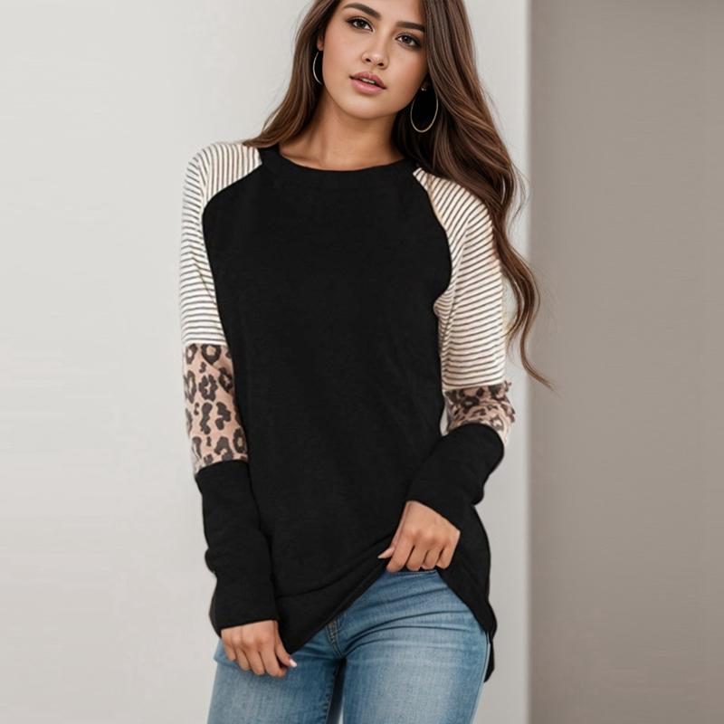 Women's Color-Blocked Stripes Round Neck Casual Long Sleeve Sweatshirt Autumn Outwear