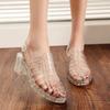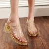 2025 Summer Women Casual Jelly Shoes Heel Women Square High Heels Transparent Platform Sandal Lady Bling Silver Sandals