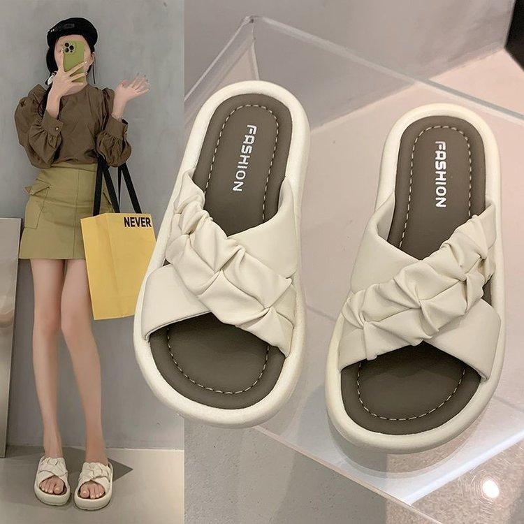 Thick-soled slippers women's outer wear 2025 summer new cross-word slippers high-end soft-soled fashionable cool slippers