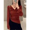 Ankara Červený Svetr s Výstřihem do V Slim Fit Dámský Jaro Instagram Chic Designérský Top s Dlouhým Rukávem Základní Vrstva Košile