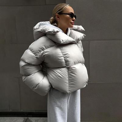 Dámská volná pohodlná ležérní módní péřová bunda s dlouhým rukávem a stojáčkem, jednobarevná
