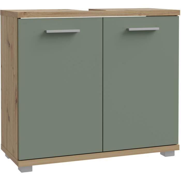 Meuble sous-lavabo - 2 portes - Décor chene & vert sauge - L69,9 x P28,9 x H62 cm - CHAMP