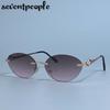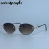 Small Frame Oval Rimless Sunglasses Women Luxury Brand Vintage Frameless Punk Sun Glasses For Ladies Trendy Outdoor Shades