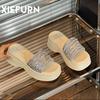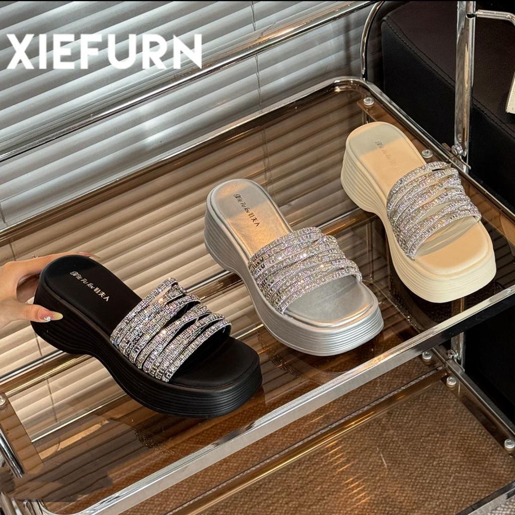 Slope heel rhinestone thick-soled one-word slippers 2025 summer new outer wear with skirt open-toed cool slippers women's models