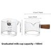 1ks Skleněná odměrka Dřevěná rukojeť Skleněná odměrka na espresso Dvojitý Jednoduchý výtok Hrnek na mléčnou kávu Průhledný Kávové potřeby