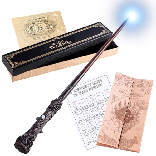 Harry Potter Illuminated Wand Set (with Light), Ribbon Box with Spell List, Admission Ticket, Atlas, and Wax Seal, Highly Restored Magic Wand Party Pr