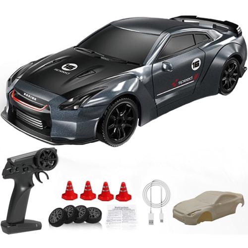 KAIMIO 1:43 Scale Mini RC Drift Car Gyro Fully Proportional RTR 2.4Ghz Remote Control with RGB Lights and 1 Replacement Body Shell (8503-Black)
