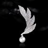 Jednoduchá a elegantní brož s peříčkem, Špičkový ženský šarm a grácie, Perlová brož, Brož s designovým smyslem