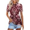 Dámská móda Neformální košile s potiskem s klopou a krátkým rukávem Dámské topy se zapínáním na knoflíky