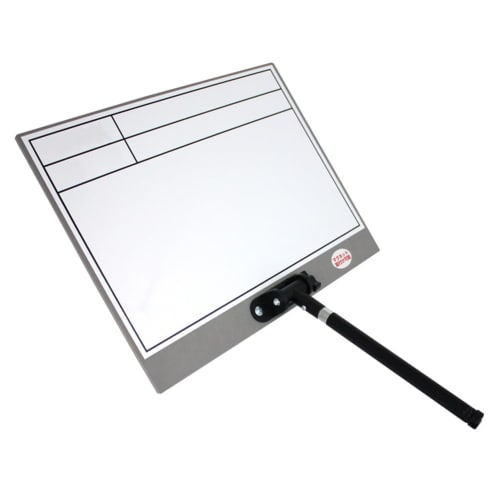 A large size and lightweight retractable whiteboard that is easy to write on. [Applications] Whiteboard for on-site photography. [Features] - Larger size compared to conventional whiteboards for on-site photography, making it easier to write on. - Since it uses a steel board, magnets can be attached, making it highly durable. [Notes] *When storing the product, please store it with the tip of the shaft slightly protruding from the main body. *The board itself may be damaged.