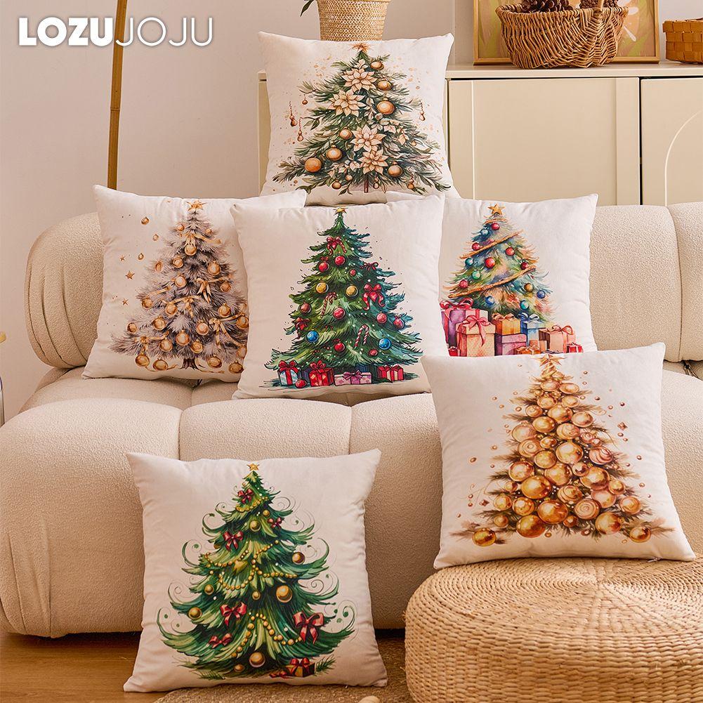 1PC LOZUJOJU Christmas Pillowcase Hand drawn Christmas tree cluster printed Cushion Cover for Sofa Living Room Bedroom Home Decor Party Decor