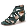 Sandály Dámská Móda 2025 Nové Všestranné Hrubé Podpatky Římský Styl Vysoké Podpatky Dámské Sandály Zadní Zip Léto Dámská Obuv