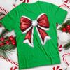 Christmas Red Nose Reindeer Bow T-shirt Plaid Glitter Shirt