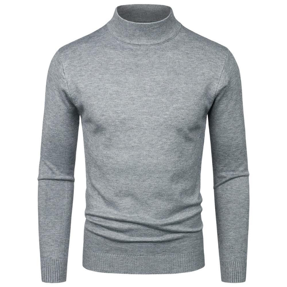 Autumn and Winter Men's Semi-high-neck Sweater, Men's Slim-fit Solid Color Pullover Base Knitted Sweater
