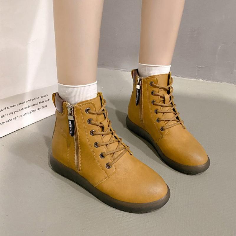 Dámské 2025 Jarní/Podzimní Ležérní Kozačky - Kotníkové Nazouvací Kozačky s Kulatou Špičkou a Bočním Zipem | Měkká Protiskluzová Podrážka