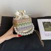 3.Innovative Design Features: The designer bucket bag boasts a drawstring closure complemented by elegant pearl, along with well-organized pockets, making it a convenient accessory for any outing.