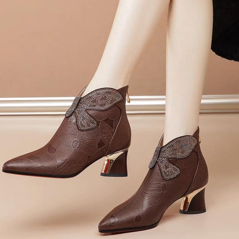 Nové čínské kotníkové boty Dámské 2025 Podzim a zima Nová móda plus size Nahé boty Špičaté špičky Blokový podpatek Jednoduché boty