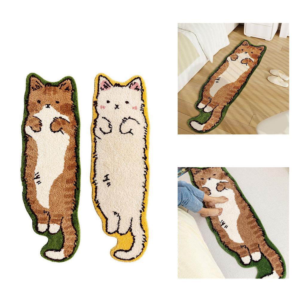 Washable Polyester Area Rugs for Bedroom Cute and Funny Children's Carpet in Irregular Shape Cat Entryway Rug
