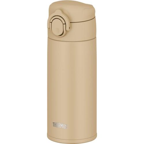 Dishwasher-Safe Model: Thermos Vacuum Insulated Portable Mug, 350ml, Sand Beige. All parts and body are dishwasher-safe. One-touch opening, stainless